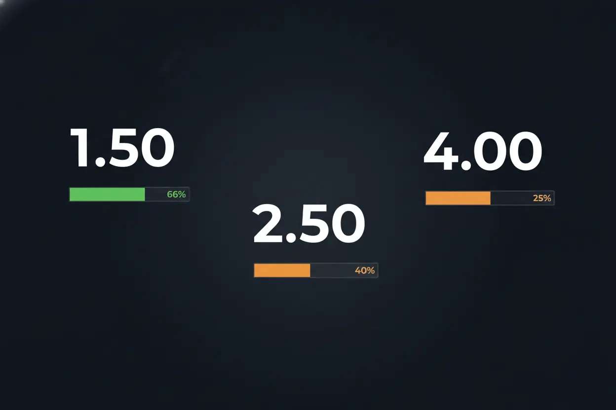 Una cuota de 2.00 significa que el mercado considera que ese resultado tiene exactamente un 50% de probabilidades de ocurrir. Cuota por debajo de 2.00: el resultado es más probable que no. Cuota por encima de 2.00: el resultado es menos probable que ocurra. Así de simple.