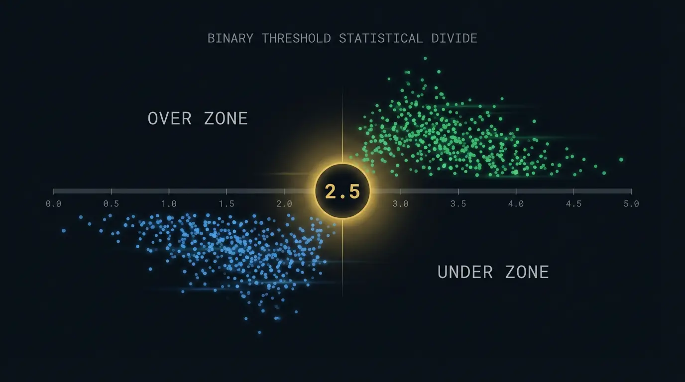 La línea estándar en el fútbol europeo es over/under 2.5 goles. Si hay tres o más goles en el partido, el over gana. Si hay dos o menos, el under gana. No hay empate posible (push) porque los goles son números enteros y la línea está en medio gol.